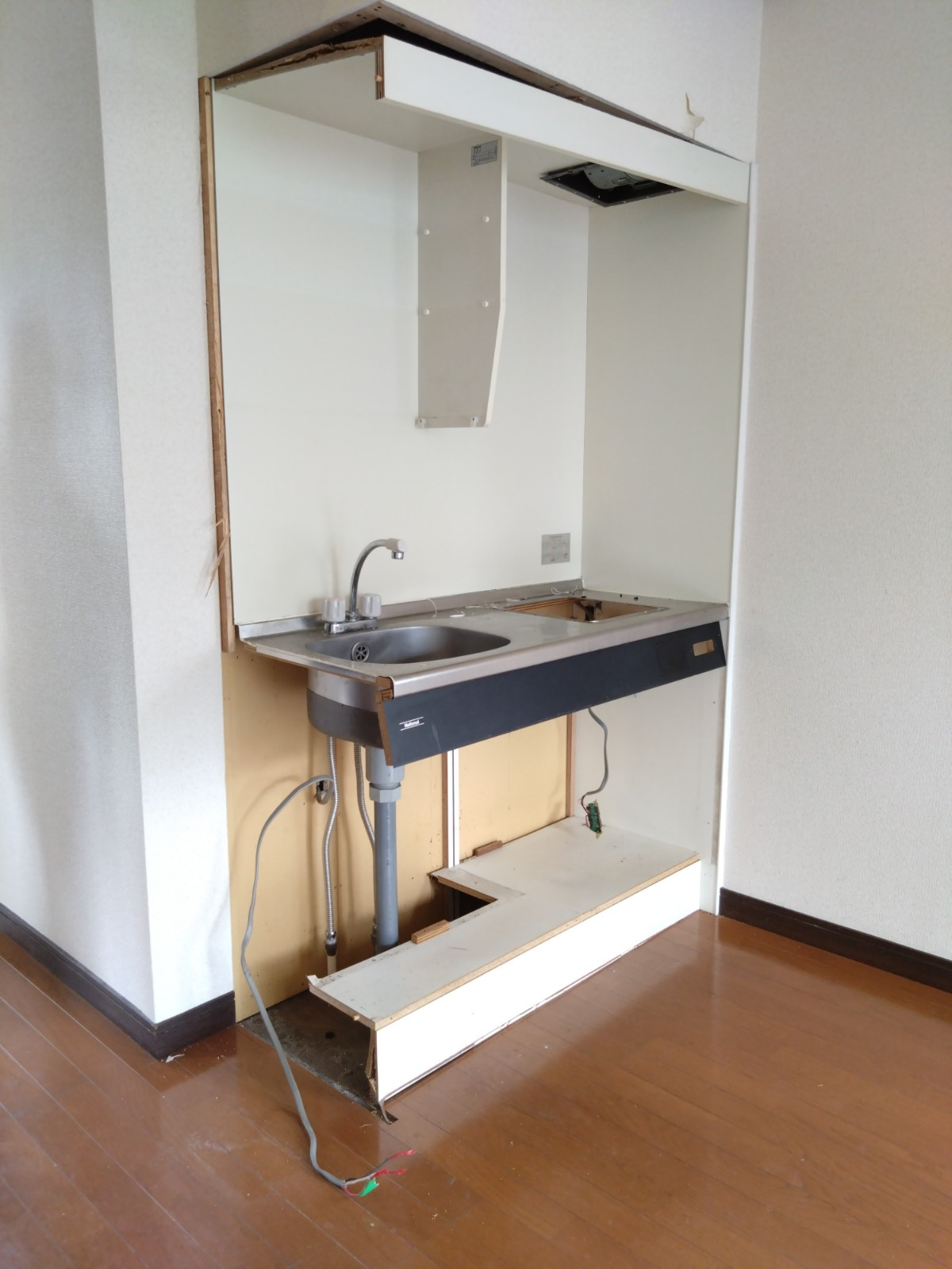 キッチン躯体材であるパーティクルボードが水気を含み、