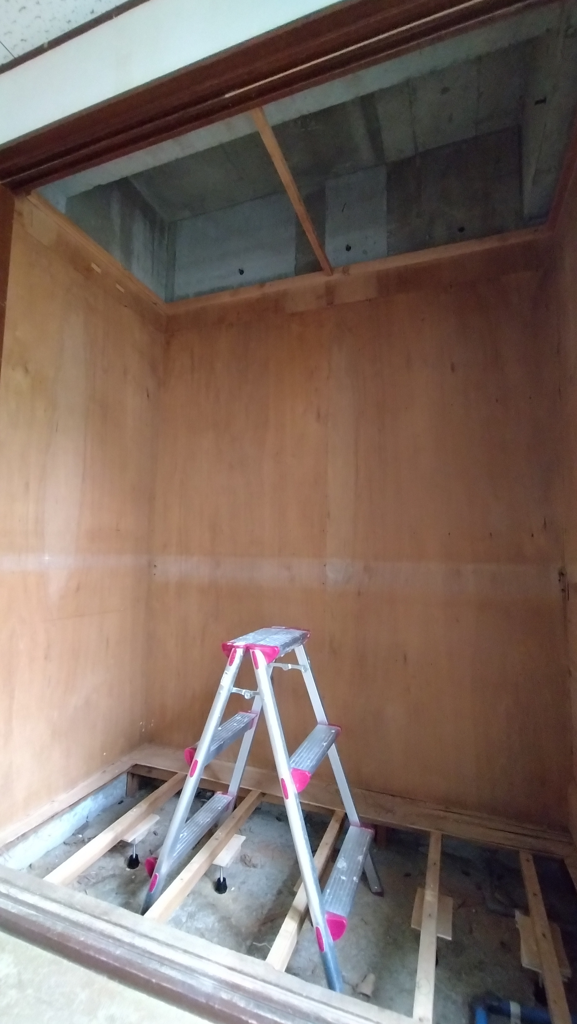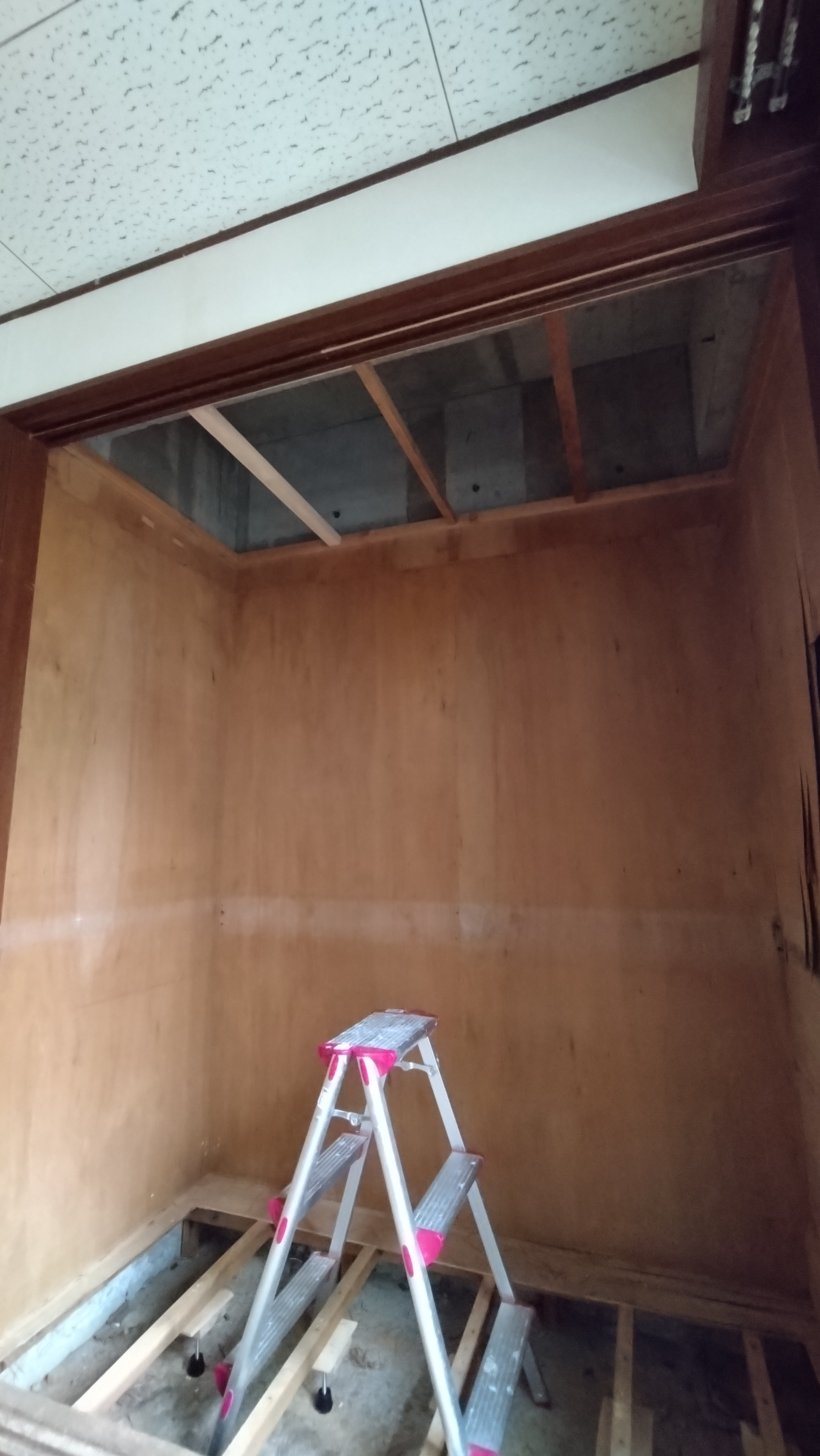 そこで、床は人が乗っても耐えられる補強をし、天井は石膏ボードを張れる程度の補強をします。